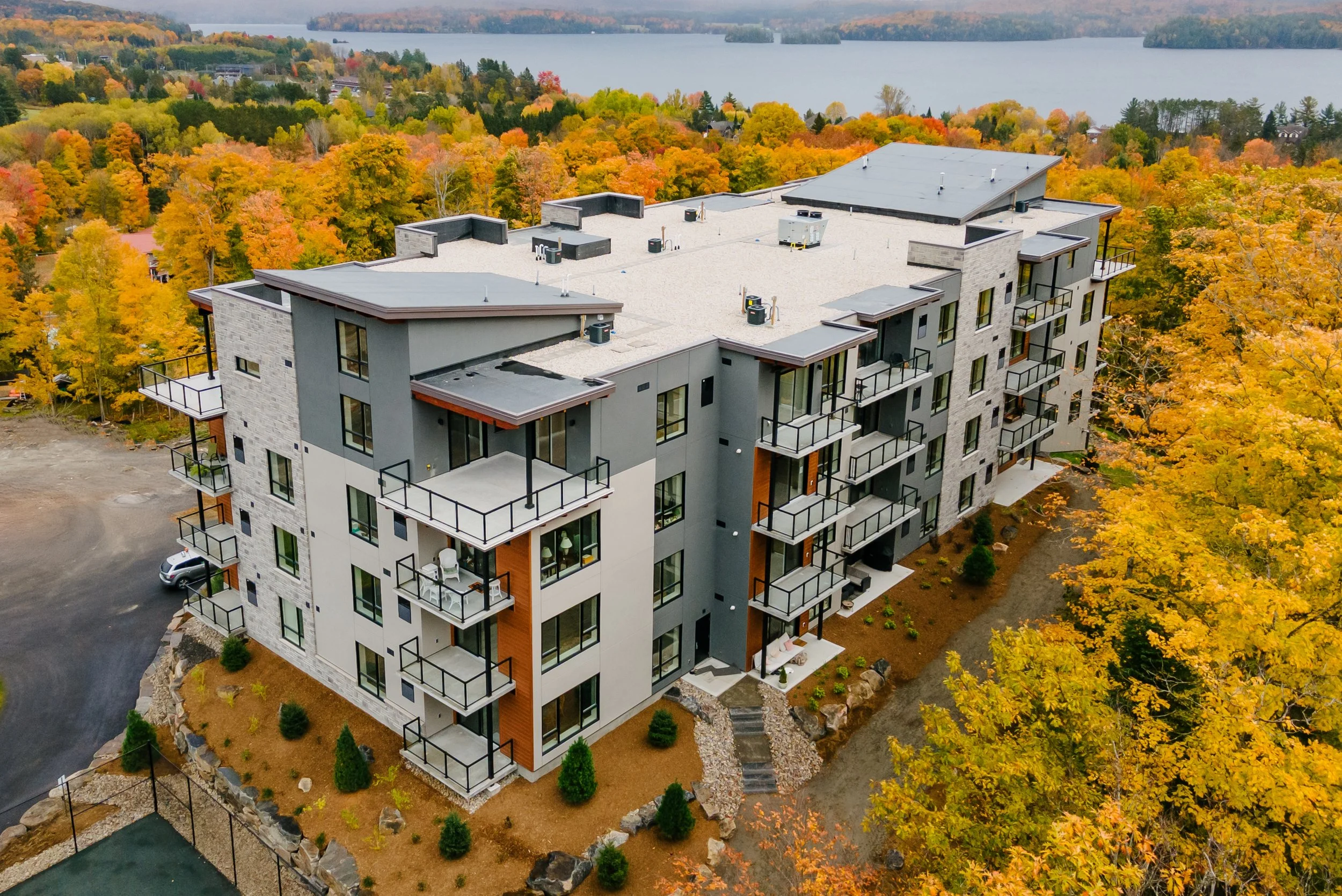 The Emily (our third condominium build at Campus Trails), with the town of Huntsville and Fairy Lake on the horizon, ready for immediate occupancy.