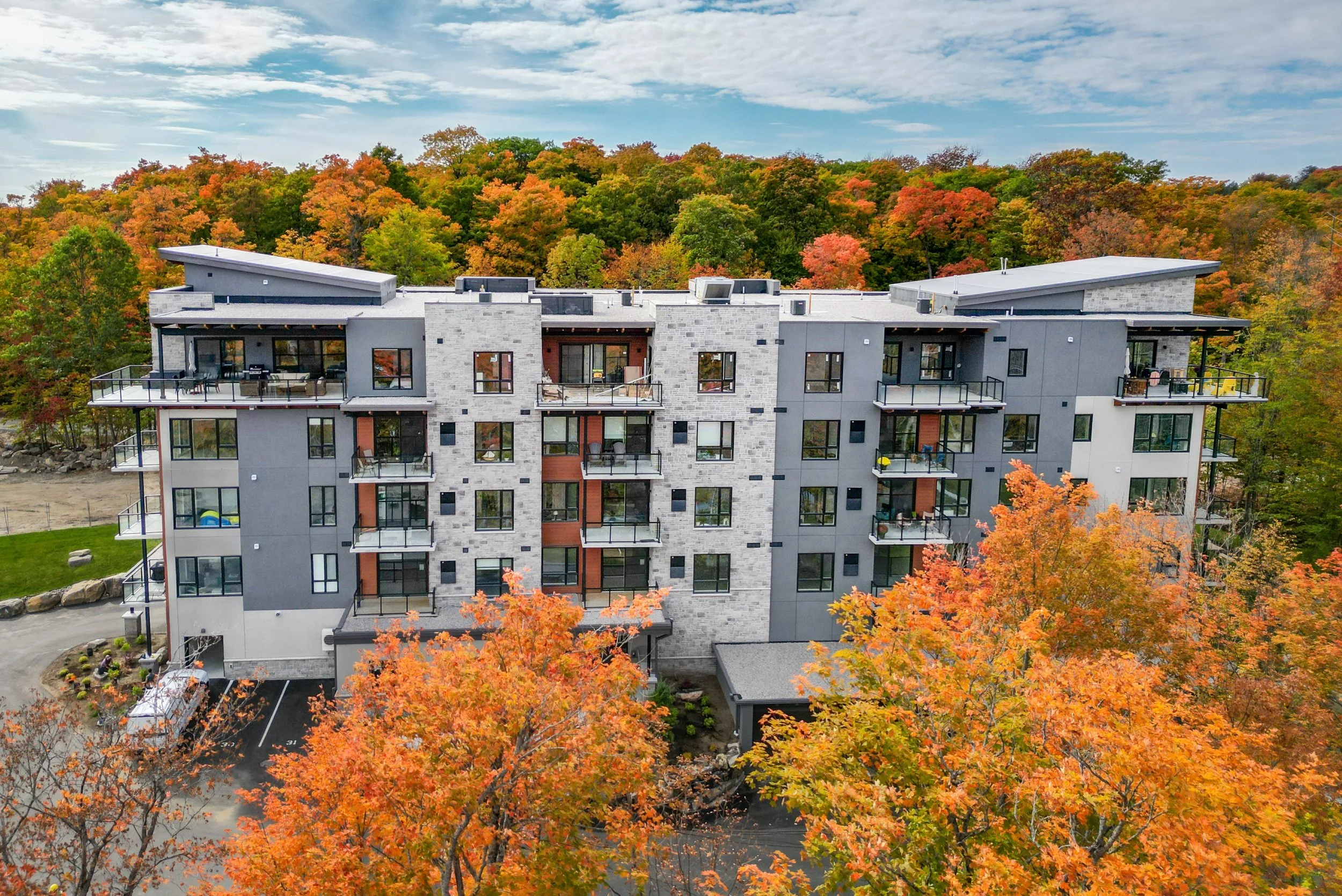 While The Tom (our first condominium building) is 3 storeys high, The Alexander stretches a little higher, at 4.5 storeys. Here, we've achieved a height that offers beautiful condo views, while keeping this building nestled below the tree line (so that the natural horizon of the surrounding forest remains unbroken).